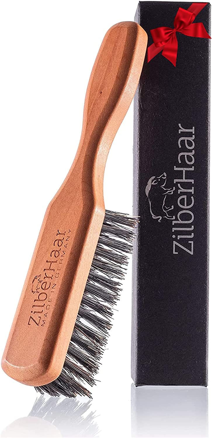 Beard Brush by ZilberHaar - Stiff Boar Bristles - Beard Grooming Brush for Men - Straightens and Promotes beard growth