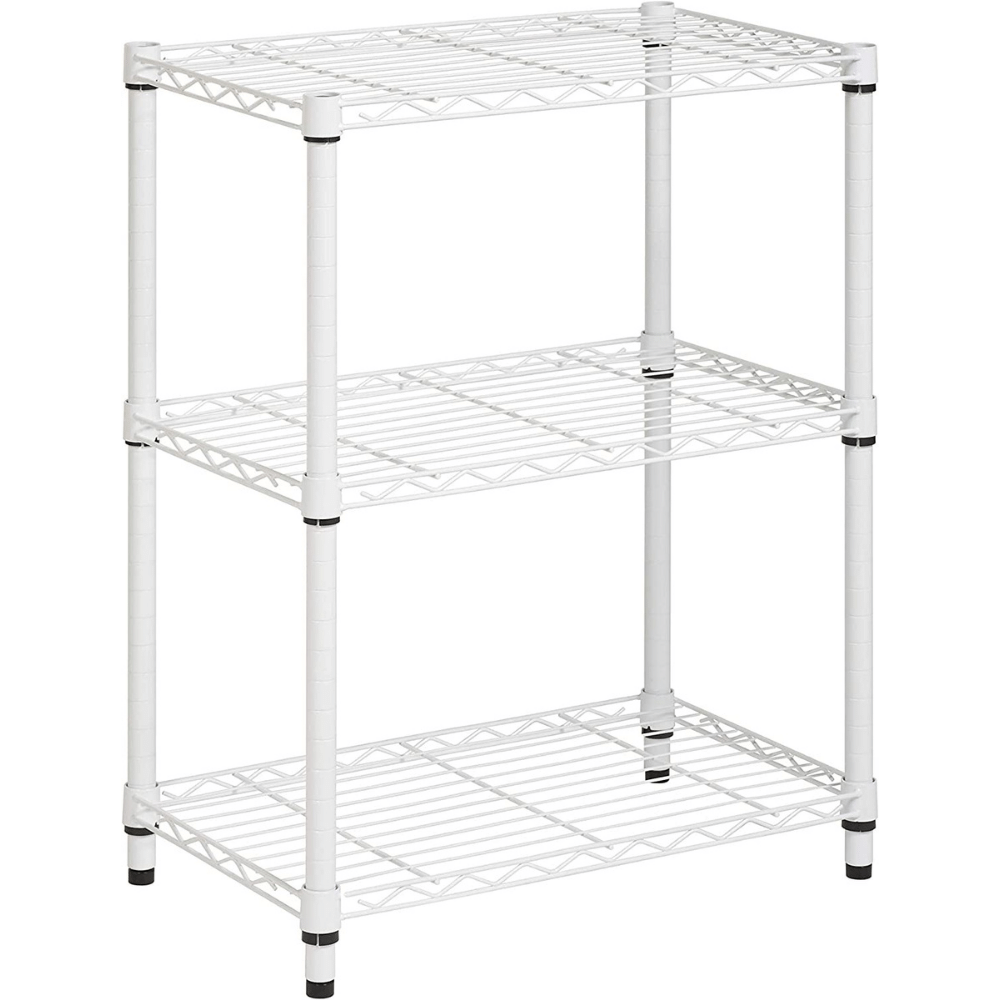 An adjustable level height design ensures that you can organize items of different sizes, shapes, and weights with ease in your storage space. It also comes with a powder-coated process for durability, which makes cleaning the rack effortless.