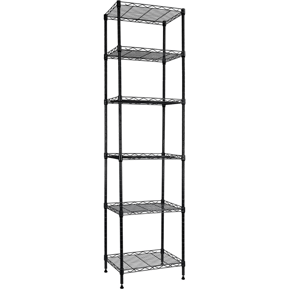 What's more, you don't need any tools; these shelves are adjustable in 1-inch increments, allowing you to customize them according to your needs in even narrow spaces or room corners. With dimensions of 16.8"Wx11.7"Dx63" H, this shelving unit offers a great way to store odds and ends while providing robustness and durability.