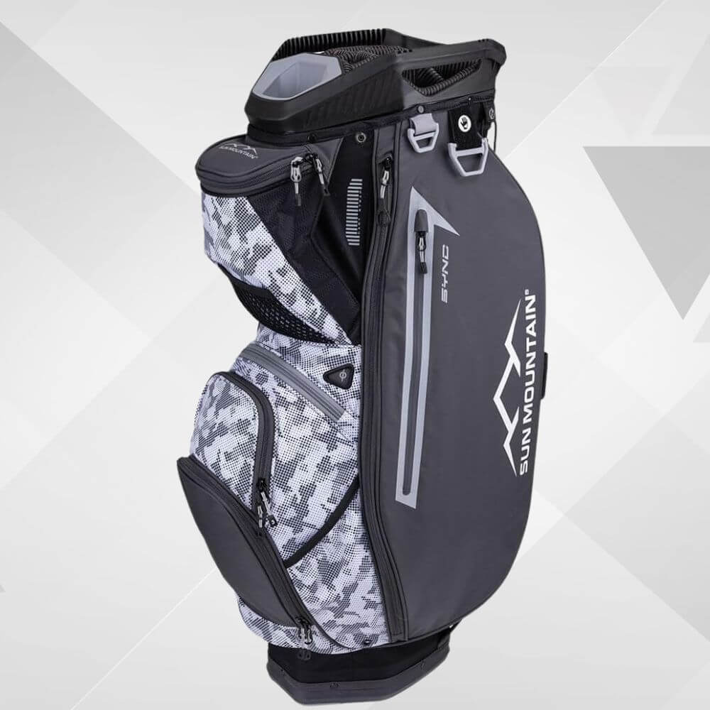 The Sun Mountain Sync offers a unique top layout for organized club storage, catering to the requirements of push cart users.