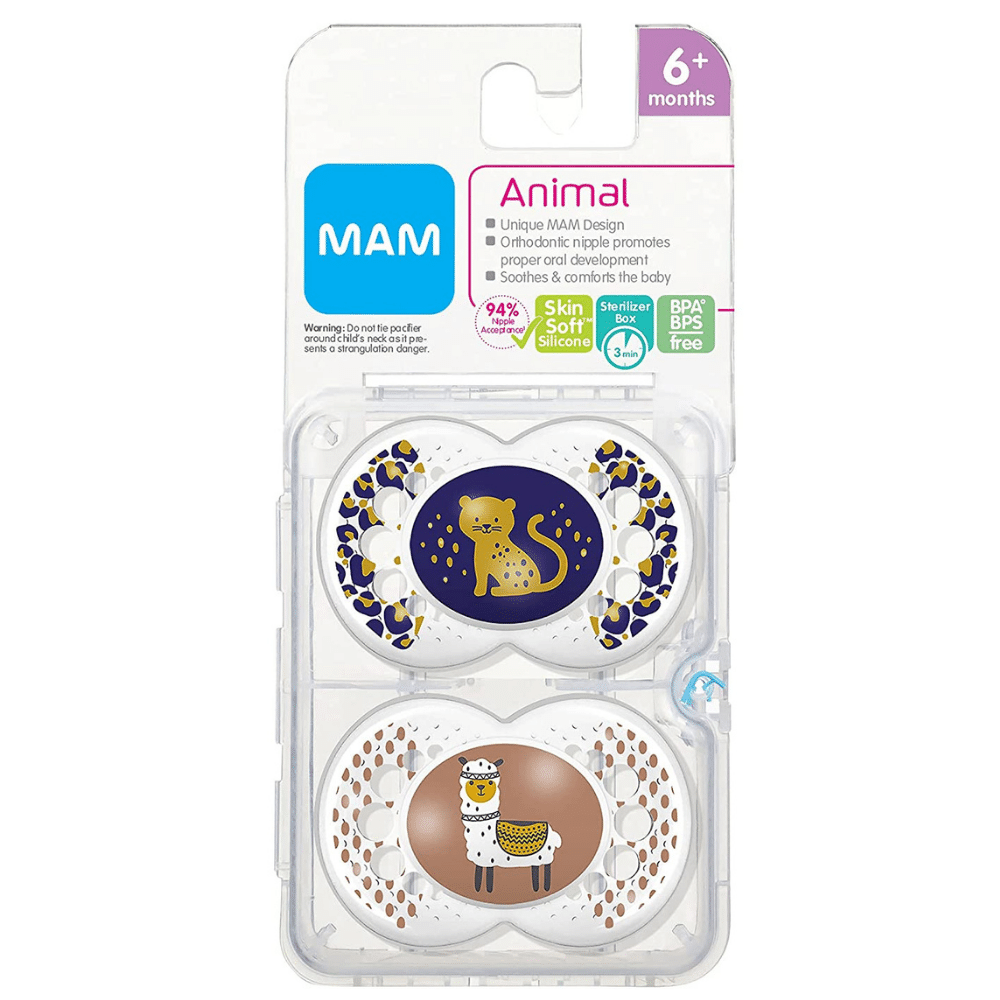 MAM Pacifiers, Baby Pacifier 6+ Months, Best Pacifier for Breastfed Babies, โAnimal' Design Collection, Unisex, 2-Count