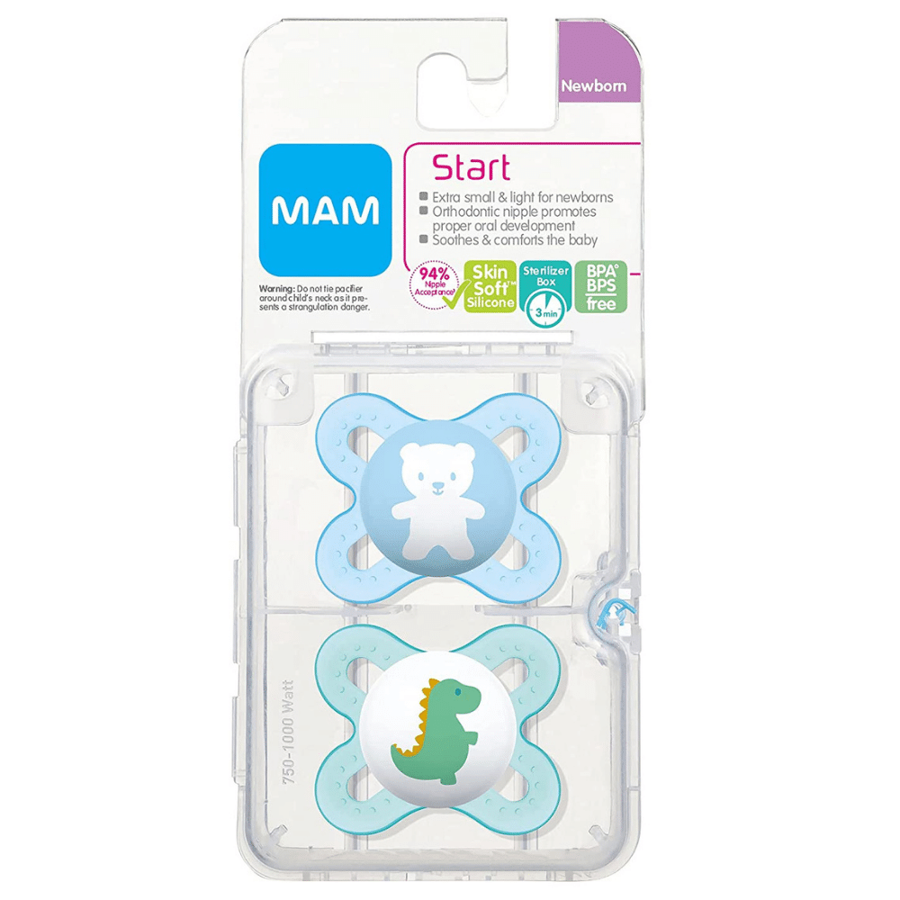MAM Original Start Newborn Baby Pacifier, Best Pacifier for Breastfed Babies, Sterilizer Case, 0-3 Months, Boy, 2 Count