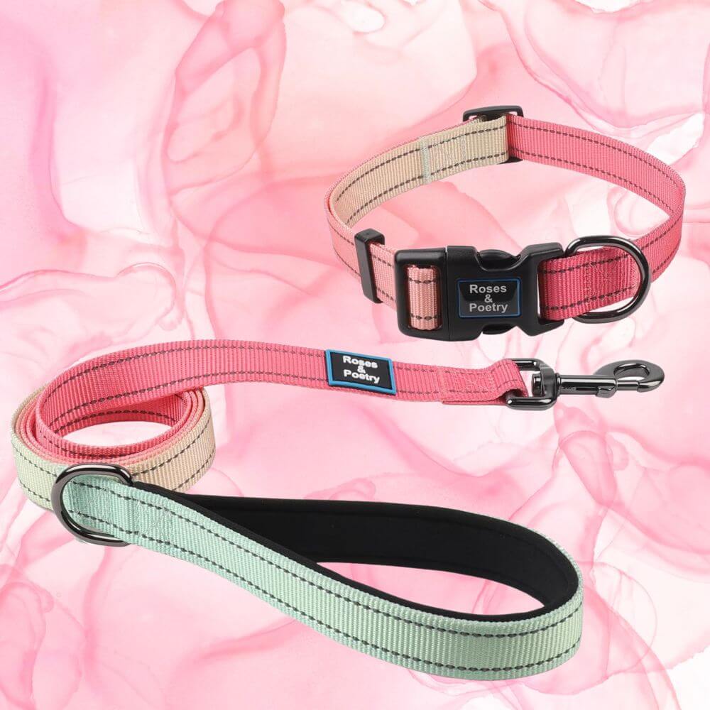 Roses&Poetry | Pink Dog Collar & Leash Set | Reflective Dog Collar