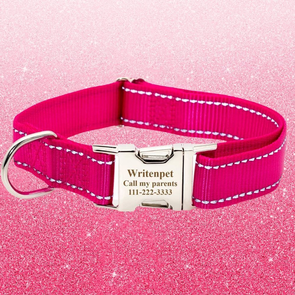 Writenpet | Personalized Custom Pink Dog Collar | Reflective | XS-XL