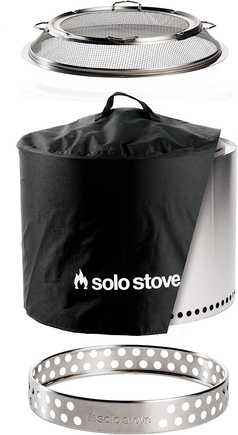 Solo Stove Bonfire Big Yard Bundle 2.0 | Incl. Bonfire Smokeless Fire Pit with Stand, Shield, Shelter, Portable for Wood Burning, Removable Ash Pan, Stainless Steel, H: 16.75in x Dia: 19.5in, 28.25lbs