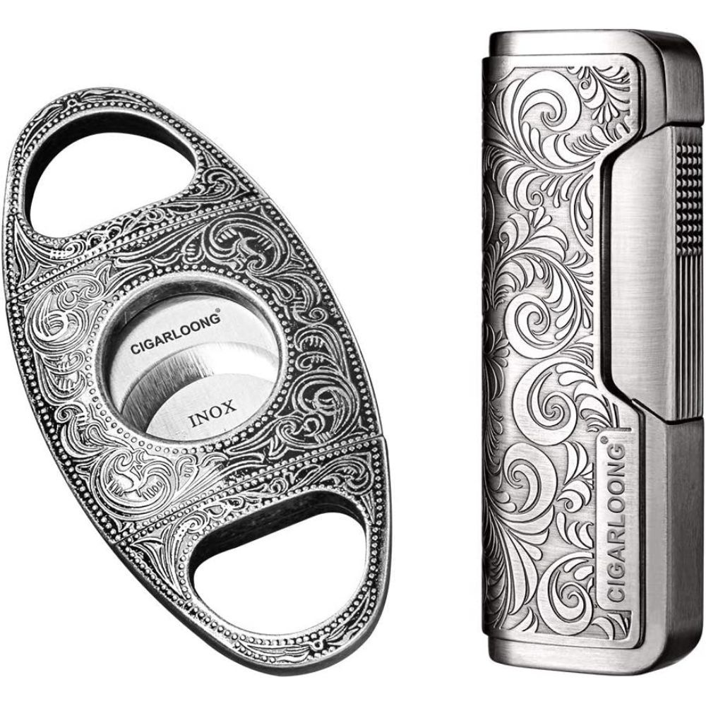 The CIGARLOONG Cigar Cutter and Lighter Set is an ideal gift for all cigar lovers. Everyone needs a personalized cigar cutter. The included cutter can accommodate a 60-ring gauge as its size is 50/64 Ring Cigar. You'll get a precise cut that will fit most cigars.