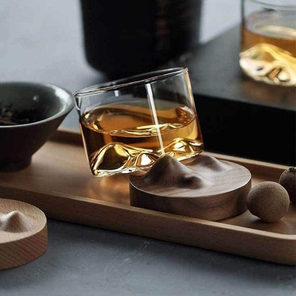The FUJI MOUNTAIN STYLE JAPANESE WHISKEY GLASS is the perfect way to enjoy your favorite whiskey in style. This glass has a unique, eye-catching design featuring a cup holder made from solid wood and a color of black walnut. The bottom of the cup also features a hand-made mountain shape bulge, offering an elemental connection to nature that you won’t find anywhere else. It holds 5oz, making it ideal for savoring each sip. This whiskey glass makes the perfect addition to any barware collection. Its timeless design ensures it will be a lasting part of your home décor while its solid construction ensures each sip will be as enjoyable as the last. Whether you’re looking for something special to celebrate or just want to add some elegance to your everyday drinking experience, this Japanese whiskey glass provides the perfect way to do it.