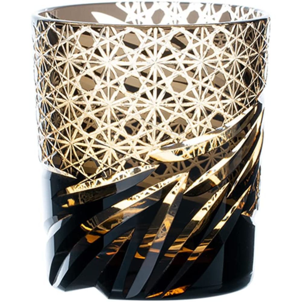 JINZHI Old Fashioned Japanese Whiskey Glass, Amber Black Engraved - BEST JAPANESE CRYSTAL WHISKEY GLASS